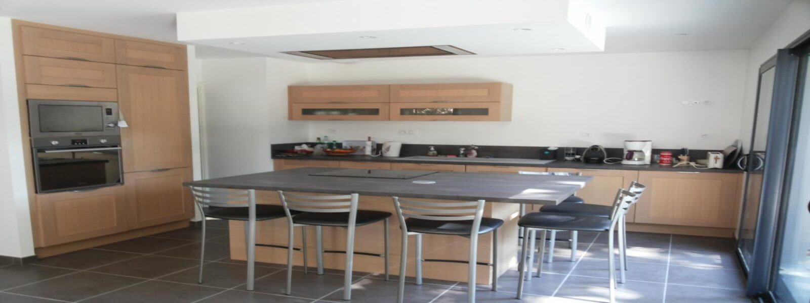 - Salon/séjour avec cuisine ouverte de 60 m² avec grande baie coulissante